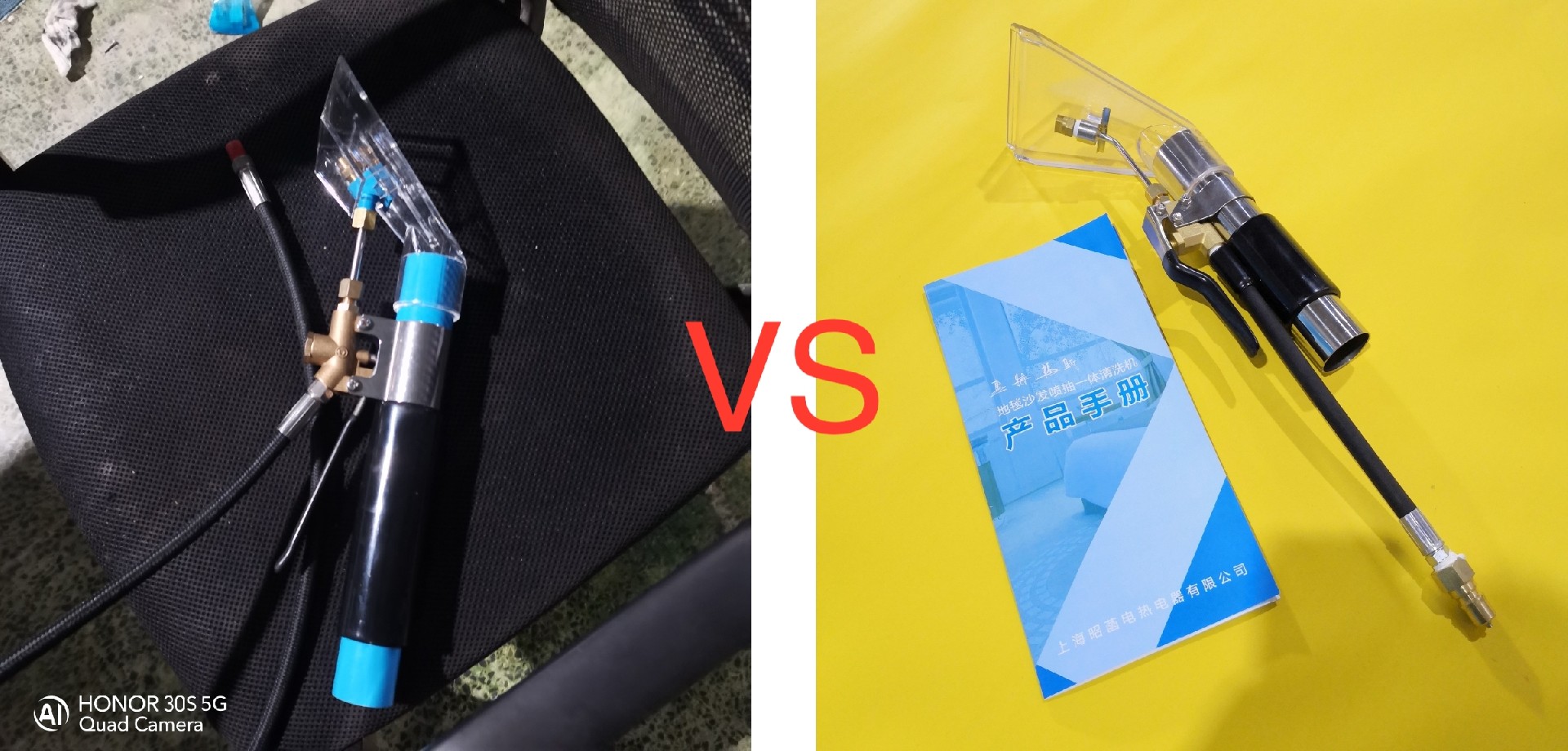 1.常规沙发扒头做到滴水不漏 2.带挡板更不容易洒落水 3.配套 1.2 米高品质蒸汽软管一根软管 100 多元 4.在参考市场上所有扒头的劣势后制造出阀门耐用,铝合金杆,在清洗沙发时阀门不会碰触沙发,因为高于沙发面! | 1.用料少,比如管子短,不好用 2.阀门用一段时间,合不严,也就是阀门关 3.不紧,一直滴水!品质不过关 4.软管配套的橡胶软管只能用于低温, 5.不能过蒸汽,蒸汽会鼓包,安全问题! | 1.颜值低,做工粗糙,卡套就是焊接的 2.喷水太大,体验不行 3.没有套高品质蒸汽软管,一个 1.2 米高品质软管 100 元! 4.品质低,价格低 |