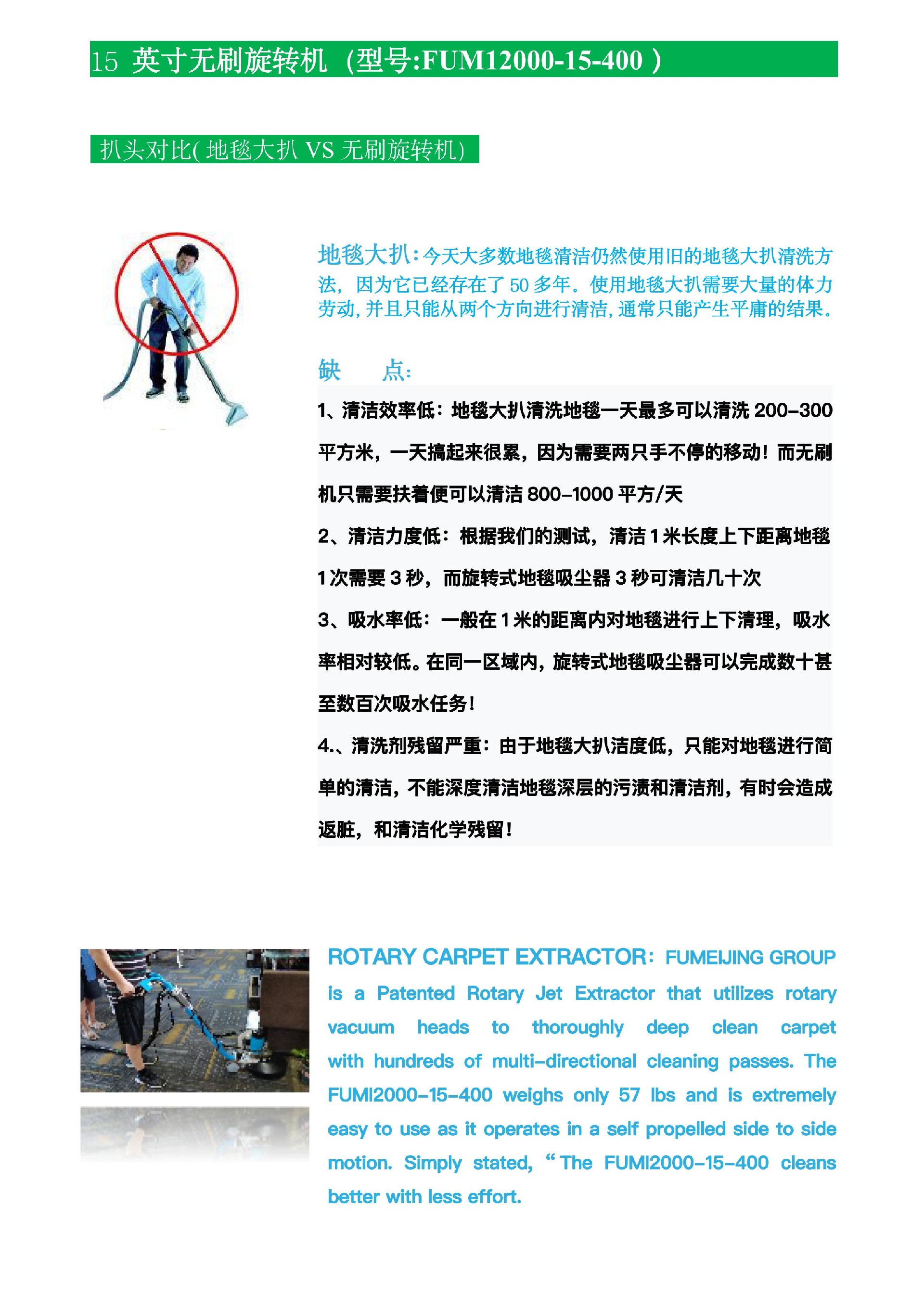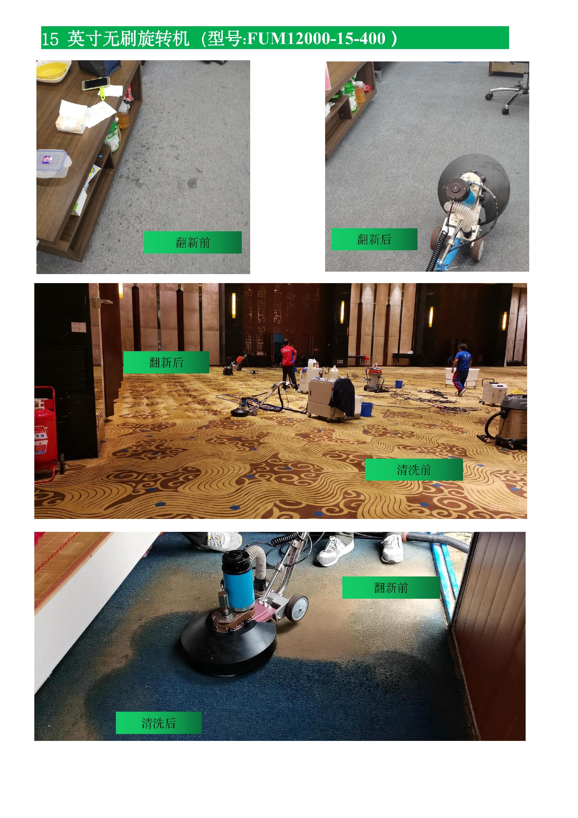 2、不管是10年的地毯还是重度脏污的地毯,都能洗干净! 当您还在为缺乏好的清洁工具而苦恼时,福美净集团旋转地毯清洗机一定会为您提供惊人的清洁效果!